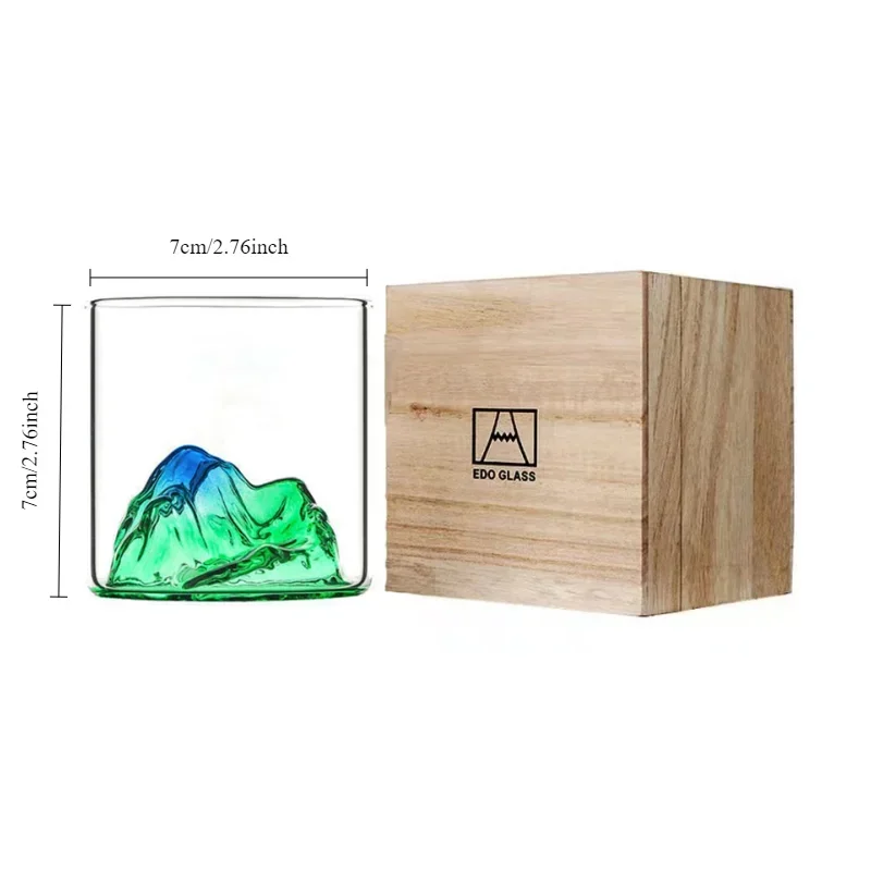 Experience whiskey like never before with this stunning Japan-inspired 3D mountain whiskey glass. Featuring a glacier design inside the glass, it beautifully enhances your Old Fashioned, whiskey, vodka, or wine experience. Crafted with precision, this tumbler comes in an elegant wooden gift box, making it a perfect gift for whiskey lovers and collectors. Durable and stylish, it’s ideal for enjoying your favorite spirits with a touch of artistry.