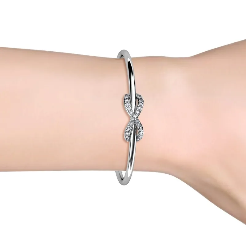 Elevate your accessory collection with the Bowknot Cuff Bangles, exquisitely crafted from high-quality brass and adorned with dazzling Swarovski crystals. The delicate bowknot design exudes timeless femininity, while the sparkling crystals add a touch of refined glamour. Perfectly blending fashion with sophistication, these bracelets are a stunning statement piece for any occasion. Embrace the latest trends and enhance your look with this elegant and versatile jewelry essential.