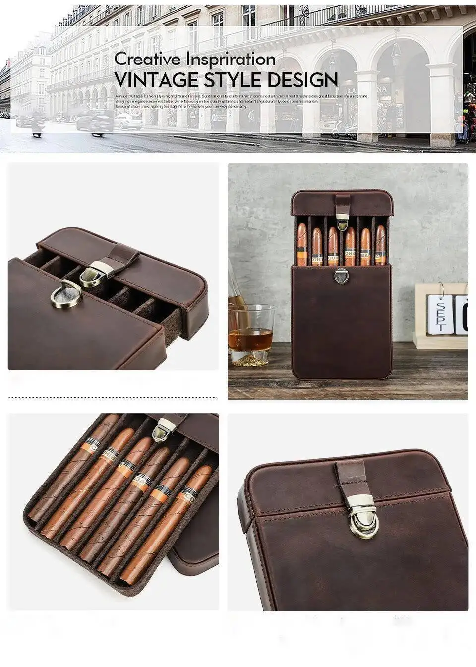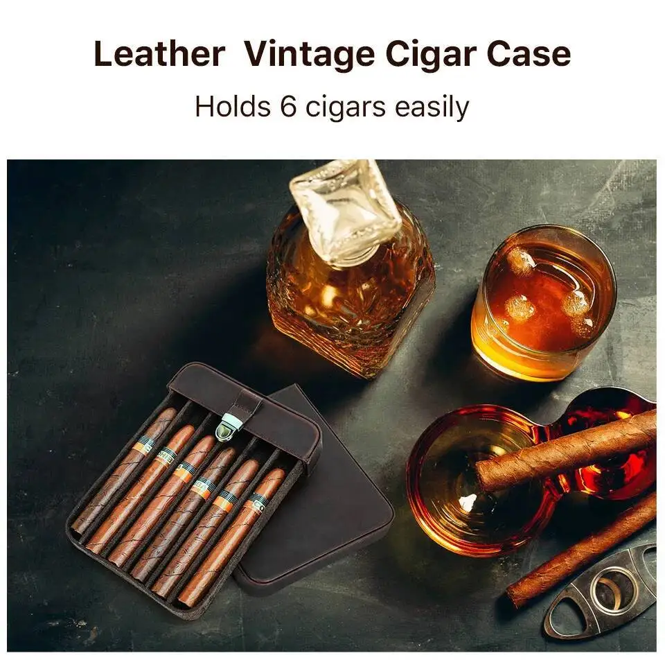 Elevate your cigar experience with this handmade vintage cigar case, crafted from genuine leather for a timeless, sophisticated look. Designed to hold up to 6 cigars, it features a secure locking mechanism to protect your cigars during travel or storage.